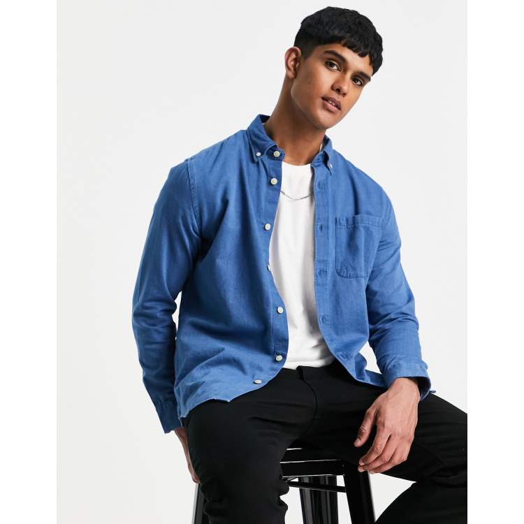 Blue denim sales shirt men